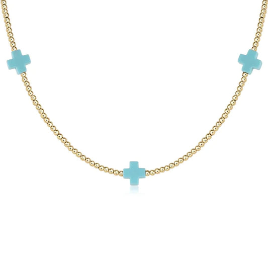 Signature Cross Choker 15" chain 2mm bead - Multiple Colors