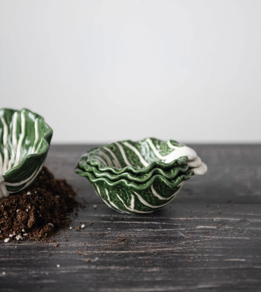 Hand-Painted Stoneware Cabbage Bowls, Set of 4