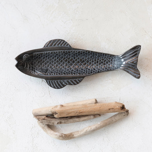 Cast Aluminum Fish Shaped Dish, Rubbed Bronze Finish