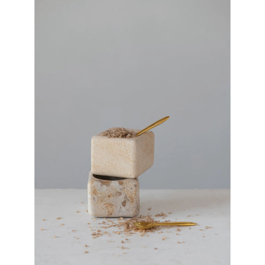 Marble/Sandstone Pinch Pot with Brass Spoon