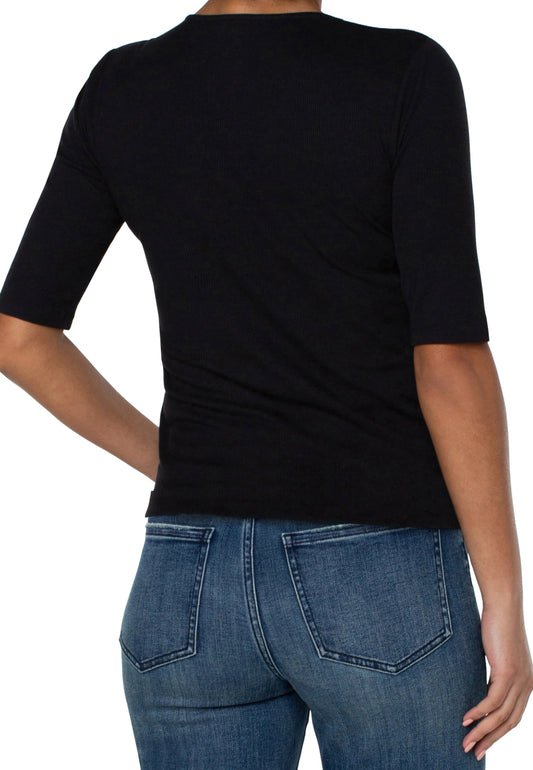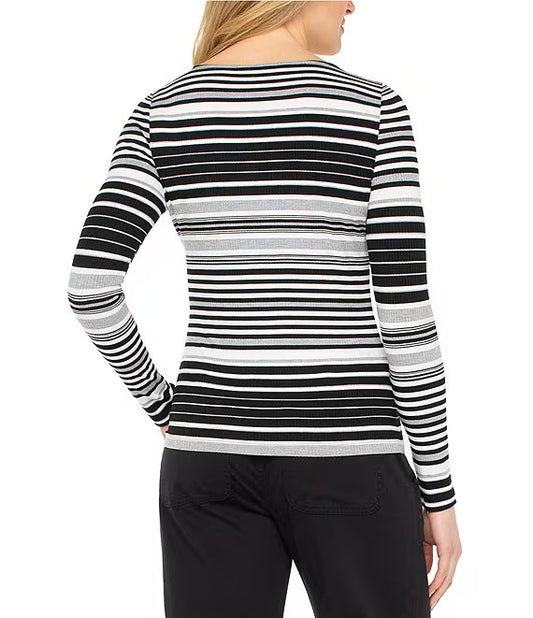 Ribbed Knit Striped Boat Neck Long Sleeve Top