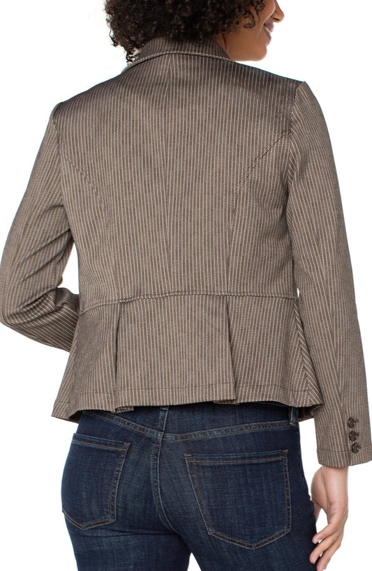 Twill Point Collar Long Sleeve Button Front Peplum Trucker Jacket