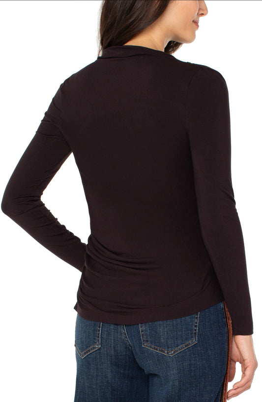 Long Sleeve Mock Neck Knit Top W/ Shirring