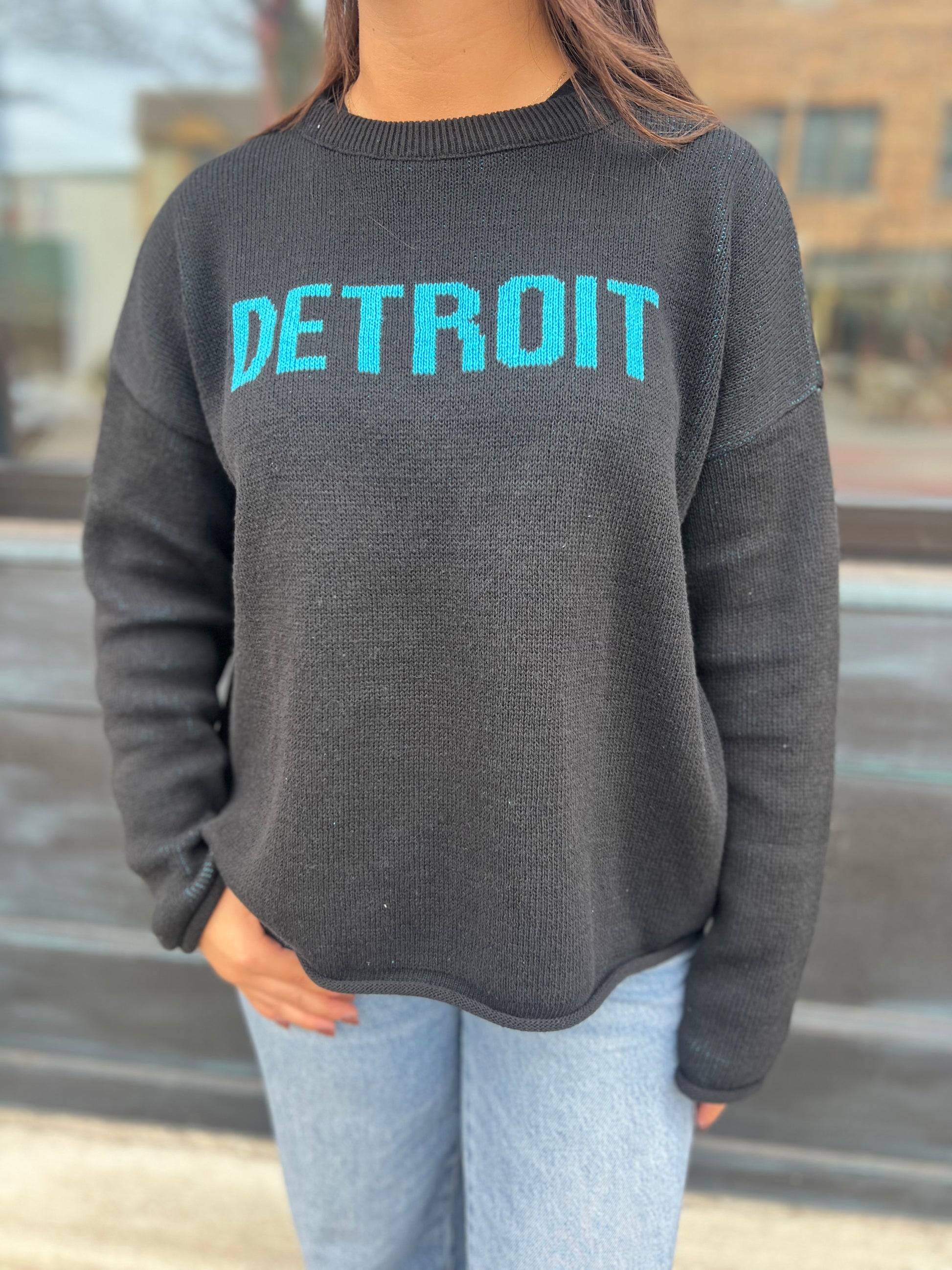 Elevate your wardrobe with thisDetroit sweater, featuring sleek blue accents that capture the essence of both elegance and energy. Inspired by the vibrant spirit of Detroit, this piece blends bold color with a touch of sophistication, making it the perfect addition to any stylish wardrobe. Whether you're showing off your team pride or simply embracing a unique, eye-catching look, the font adds a modern, refined twist to the signature Honolulu Blue. Perfect for game day or a night out, this sweater effortlessly combines comfort, style, and hometown pride.