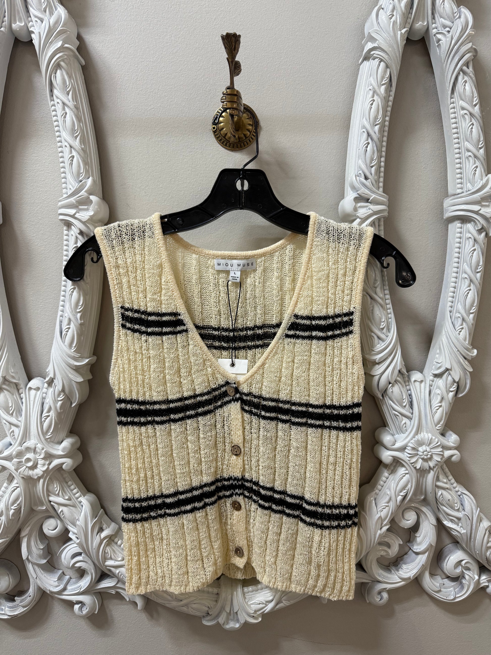 Turn heads in this fun and flirty button-down tank top by Miou Muse. Designed to elevate your everyday look, this top features a chic button-front detail that adds just the right amount of playful charm. Crafted from a soft, lightweight blend of 80% acrylic and 20% nylon, it offers both comfort and style—perfect for layering or wearing solo.