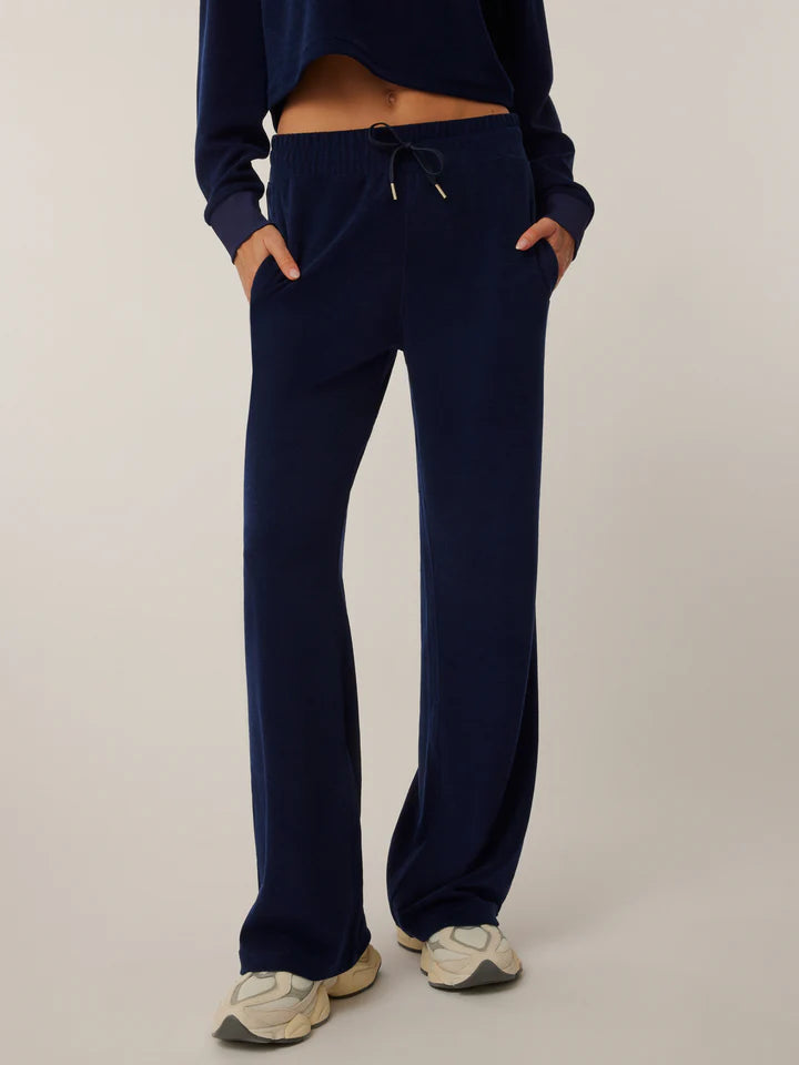 Crafted from a luxurious terry cloth, the Dune Pant keeps you cool and comfortable all day long. With its gentle stretch and soft texture, it offers effortless movement and a flattering fit. Whether lounging by the beach or exploring the city, this elevated pant combines style and functionality for a modern chic look. Finished with a drawstring waistband and side pockets.