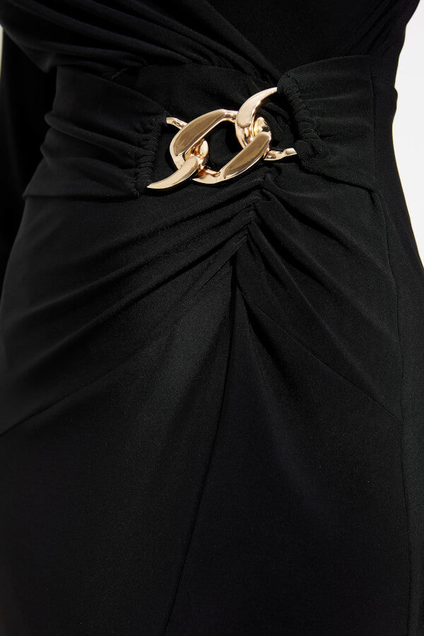 Elegant and feminine, this beautiful dress leaves an instant impression. It's made from ultra-soft knit fabric and features a solid pattern. It also comes with a wrapped neckline and long straight sleeves. A fit-and-flare silhouette pulls the look together.