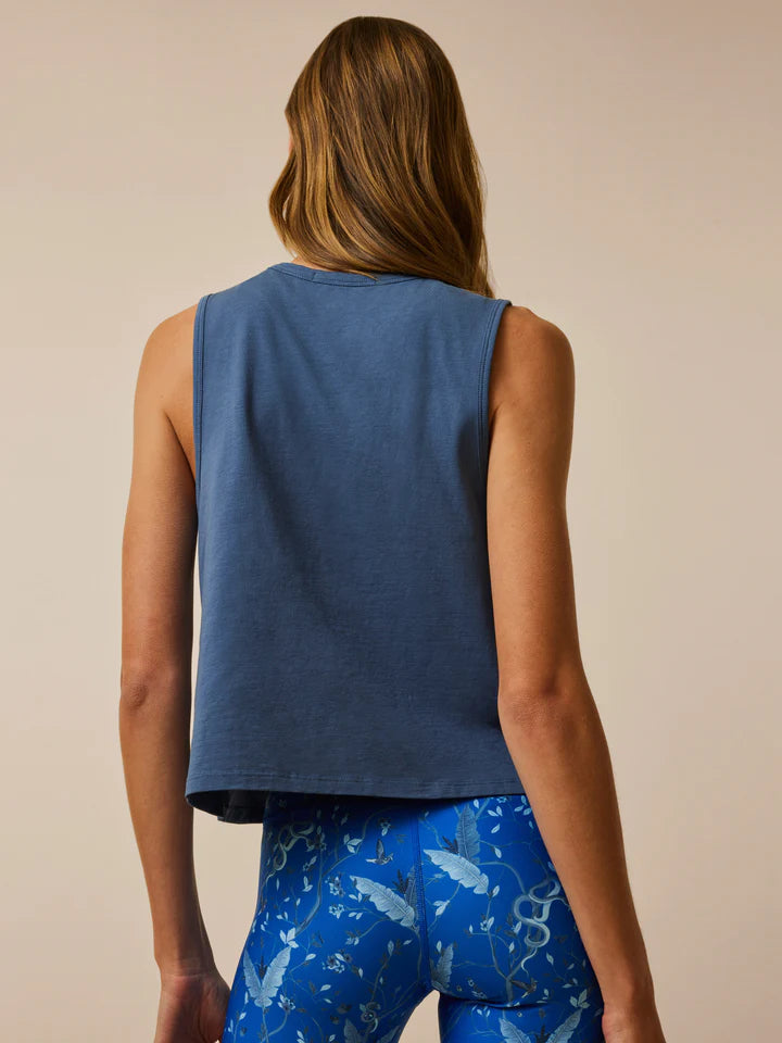 The Sleeveless Sloane Top is made with pima cotton to deliver a buttery soft active tee with moisture-wicking properties. Loose on the body and with a cropped look that sits just above the waistline, pair this top with your favorite sports bra and leggings for the ultimate active set.