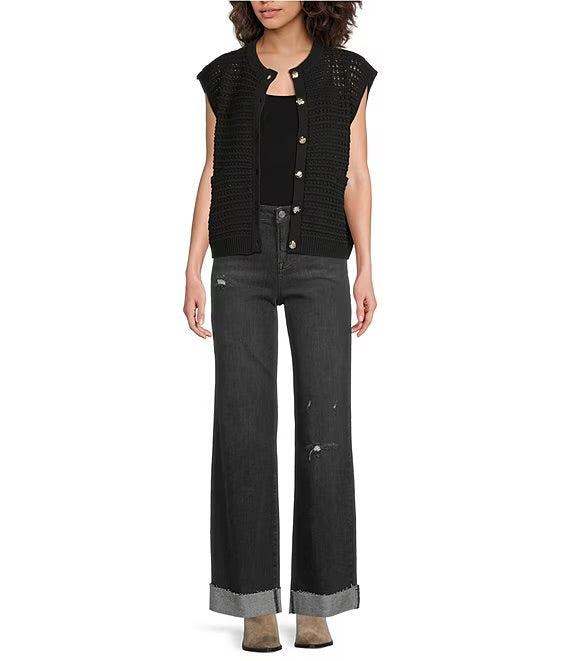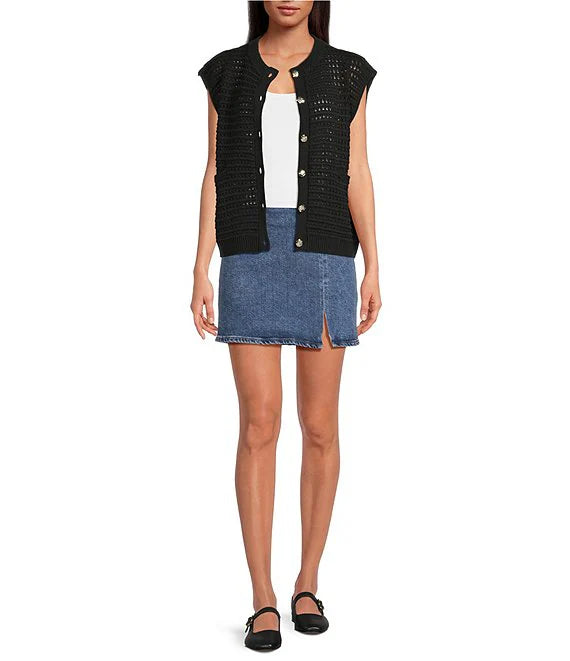 Sweater Knit Cap Sleeve Button Front Cardigan